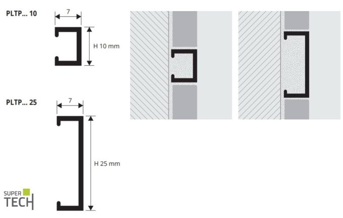 Destinat pentru a fi aplicat intre placile de faianta montate pe perete sau placile de gresie, parchet ori piatra naturala montate pe pardoseala, acest profil versatil poate fi folosit si ca profil de trecere sau de separare intre diferite tipuri de pardoseli aflate la acelasi nivel, ca de exemplu: gresie, piatra naturala, lemn, parchet, etc, in zonele cu trafic casnic, sau chiar si ca profil de capat pentru faianta care a fost deja montata.