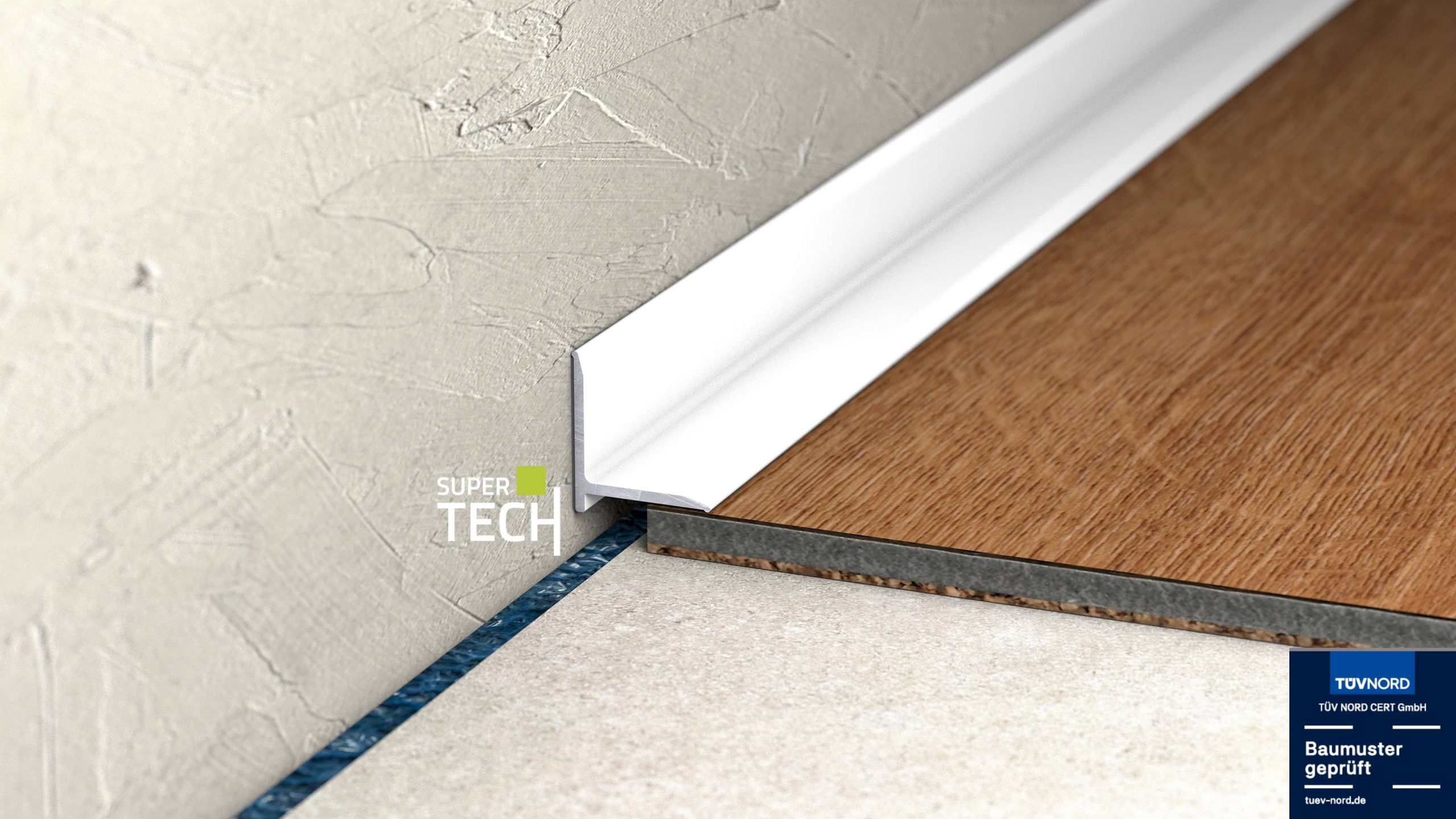 Miniplinta aluminiu alba pentru imbinare perete- pardoseala Supertech 298A