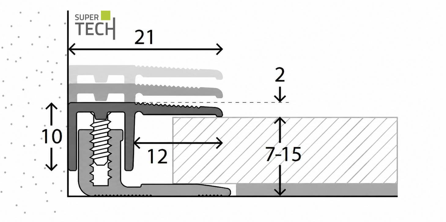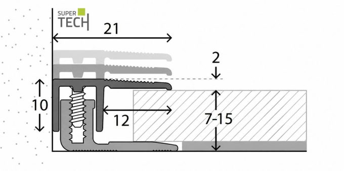 Profil de inchidere la capat cu inaltime reglabila 7-15mm aluminiu negru Supertech LPS220